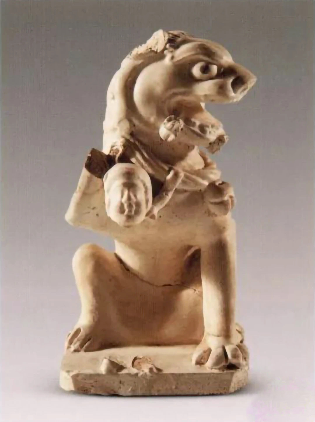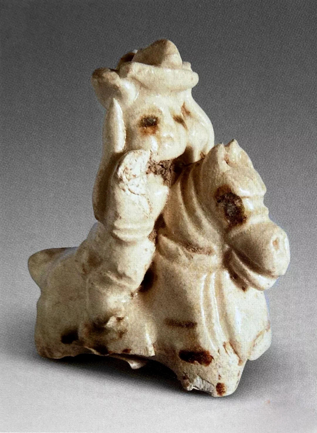 出土白瓷:巩义窑白釉粉盒、巩义窑白釉碗、巩义窑白釉盒、巩义窑白釉狮、白釉执壶、白瓷骑马女俑、白瓷杯4、白瓷盏托2