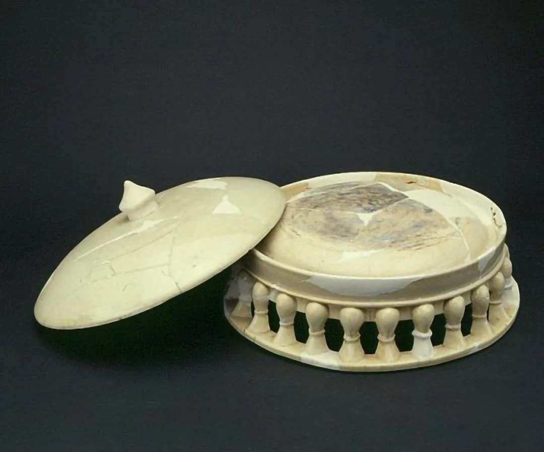 出土白瓷:巩义窑白釉辟雍砚1、三足盆 1