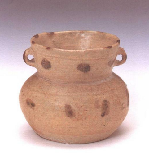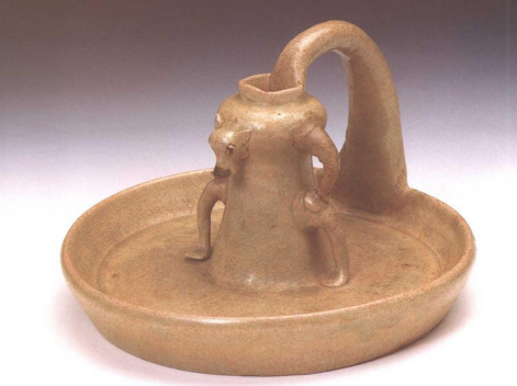 In terms of decoration, the elaborate and ornate style of the Western Jin period gave way to overall simplicity. Traces of Western Jin motifs like oblique diamond patterns and linked-pearl designs remained visible before the Xiankang era (335 AD), but thereafter, string patterns and brown dot accents became prevalent. These dots were often applied to rims, shoulders, or animal eyes, serving to enliven and accentuate the pieces. Animal-shaped vessels became significantly less common, appearing only in a few categories like candlesticks and water receptacles. Vessel forms generally grew taller and larger, with designs emphasizing practicality and featuring smooth, balanced lines.