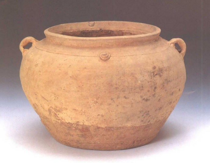 Meanwhile, the funerary objects common in the Western Jin period—such as molded clay vessels, mortars, sieves, wells, and pigsties—virtually disappeared by the Eastern Jin period, appearing only sporadically in a handful of tombs. This reflects a trend toward simpler burial customs. Among typical artifacts, bowls in the late Eastern Jin period predominantly featured plain surfaces with string-impressed patterns, along with faux ring bases and stacked firing marks. Eared cups were often unearthed paired with plates, serving as precursors to lamp stands. Later bowls commonly displayed dotted decoration around the rim, which gradually gave way to plain surfaces. Among jars, the chicken-head spouted jar and the flat-rimmed jar maintained their forms for extended periods with minimal variation, though late examples featured bridge-shaped handles and dotted decoration.