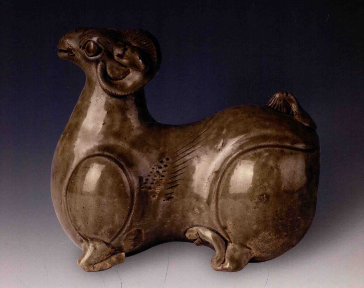 Yue Kiln Celadon Brown-Glazed Goat-Headed Vase
