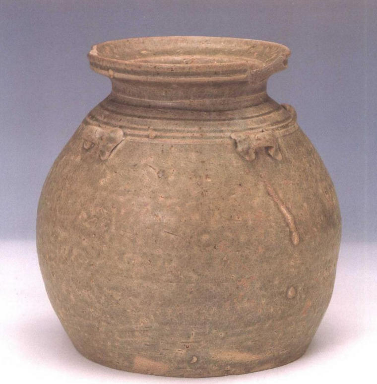 Yue Kiln Celadon Four-Handled Bowl-Mouthed Jar