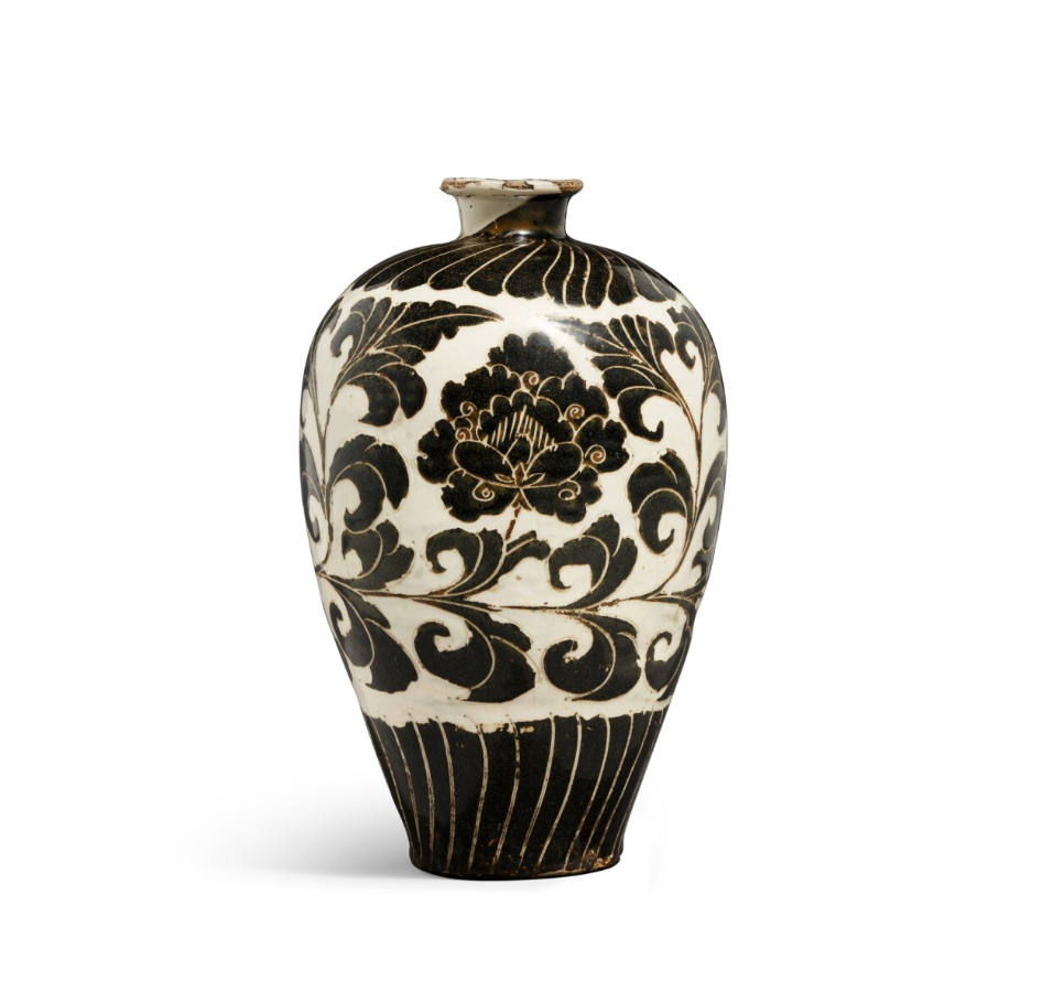 北宋晚期/金早期 磁州窯白地黑剔花牡丹紋梅瓶