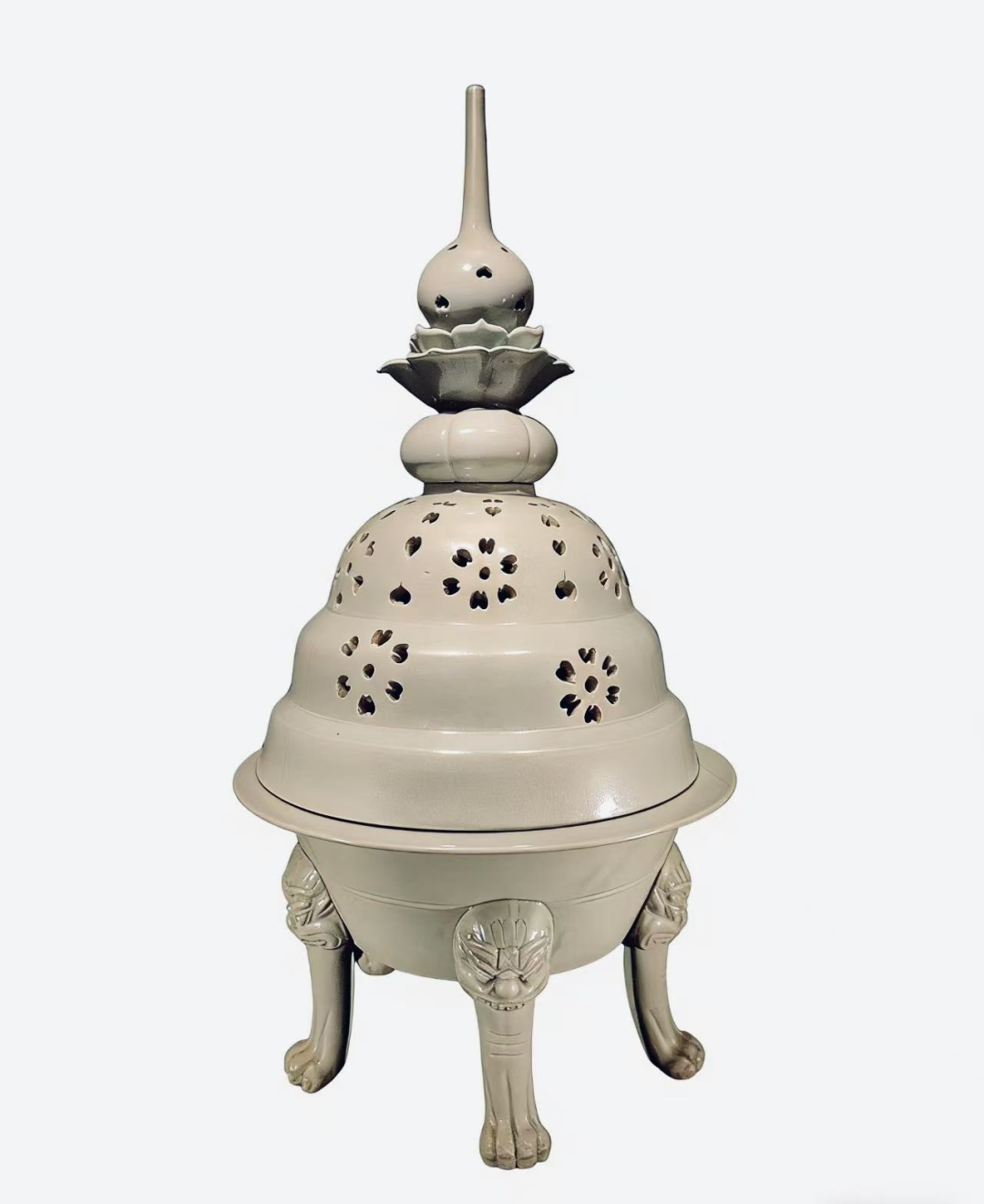 Secret-color celadon, representing the pinnacle of Yue kiln artistry, embodies the perfect fusion of craftsmanship and aesthetic sensibility of its era. With its jade-like lustrous glaze, pure and delicate body, and elegant, balanced forms, it achieves a pure beauty that transcends mere decoration. The aesthetic core of secret-color porcelain lies in its rejection of elaborate patterns, relying instead on the dignified presence of its forms and the warm, restrained elegance of its glaze. Its forms are richly diverse, primarily including bowls, plates, bowls, cups, boxes, and other vessels. It also encompasses ewers, vases, jars, saucers, incense burners, basins, pillows, belt-ring ewers, octagonal purifying vases, round-bellied purifying vases, cup stands, and more. Each type of vessel features multiple distinct shapes, all embodying ingenuity within simple lines. Its glaze is crystalline and pure, with a soft luster. To the eye, it resembles distant mountains veiled in mist; to the touch, it feels like the gentle ripples of spring water. This fully embodies the refined, restrained, and scholarly aesthetic cherished in Jiangnan culture since the Tang Dynasty. To achieve the artistic effect of “like ice, like jade; without water, yet like water,” they pioneered the ultimate technique of individually sealing each piece in a porcelain saggar with glaze before firing. This ensured the purity and perfection of the glaze color. Every vessel, from the initial shaping to the full glaze firing, was crafted with meticulous attention to detail and without regard for cost, reflecting its status as exclusive porcelain for the imperial courts of the late Tang and Five Dynasties periods.