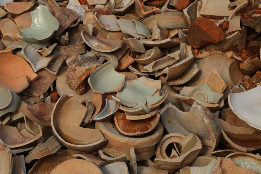 However, where were these exquisitely crafted secret-color celadons produced? Excavations at the Housiaoyao kiln site in Cixi, Zhejiang Province, from 2015 to 2017 (selected as one of China's Top Ten Archaeological Discoveries of 2016, Figures 33-35), finally pinpointed the precise origin of this legendary celadon hue. These excavations not only confirmed the kiln site as the core production center for secret-color porcelain during the late Tang, Five Dynasties, and early Northern Song periods, but also established a complete chain from production to use through a series of key evidence: Beyond matching forms and body-glaze characteristics, individual porcelain kiln shelves excavated at the site bore clear inscriptions reading “Luohu Master's Secret-Color Bowl” (Fig. 36), directly attesting to its production of “secret-color porcelain.” Fragments of an octagonal ewer discovered at the kiln site matched the base markings of an octagonal ewer unearthed from the Famen Temple underground palace exactly (Fig. 37). These discoveries act as a key, definitively solving the mystery of the secret-color porcelain's origin and establishing its production-distribution relationship on a solid archaeological foundation. They also unravel the mystery of its manufacturing techniques: The highest-grade porcelain clay (Fig. 38), celadon glaze, meticulously polished bodies, strong reduction firing using porcelain kiln shelves with glaze-sealed openings (Fig. 39), diverse forms (Fig. 40), and an aesthetic emphasizing form and glaze color—all these elements collectively established the technical and aesthetic foundations of China's highest-grade celadon.