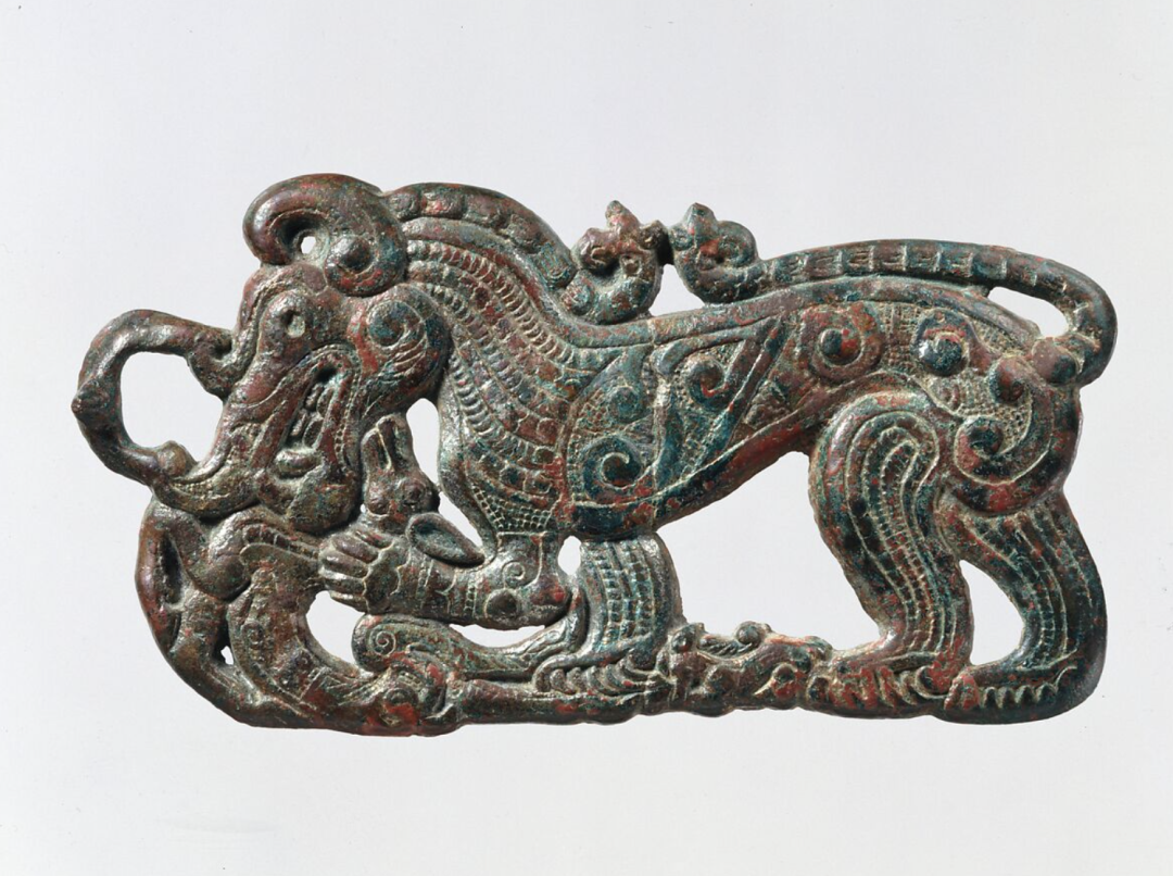 Though nomadic peoples left no written records, the metal artifacts, pottery, and horse tack they produced became key to deciphering their culture and beliefs. Moreover, lacking natural boundaries, the artifacts of these horse-riding nomads exhibited remarkable homogeneity across the Eurasian steppes, reflecting their similar lifestyles and natural environments. As quintessential equestrian peoples, these groups produced vast quantities of horse- and riding-related artifacts, often adorned with animal motifs such as wild goats, hedgehogs, deer, camels, griffins, and dragons. These motifs radiate both a fierce, aggressive energy and an alluring charm, perpetually brimming with vitality and life. This “animal style” became a major source of inspiration for decorative arts across Eurasia for centuries to come.