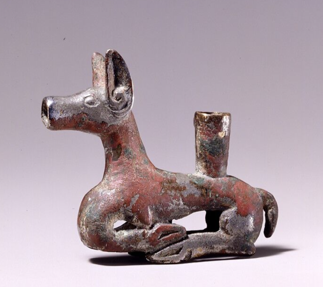 Bronze fittings from a mounted rabbit hunter unearthed from Tomb No. 3 at Nanshangen, Ningcheng, Inner Mongolia. 8th century BC.
