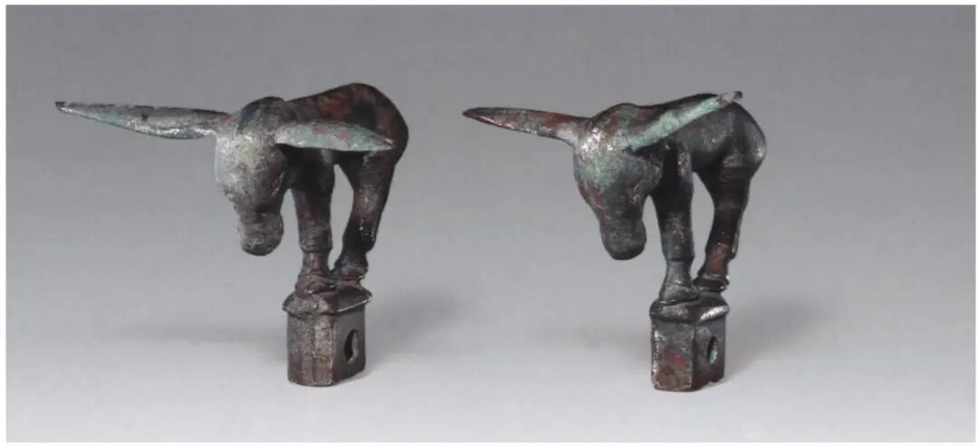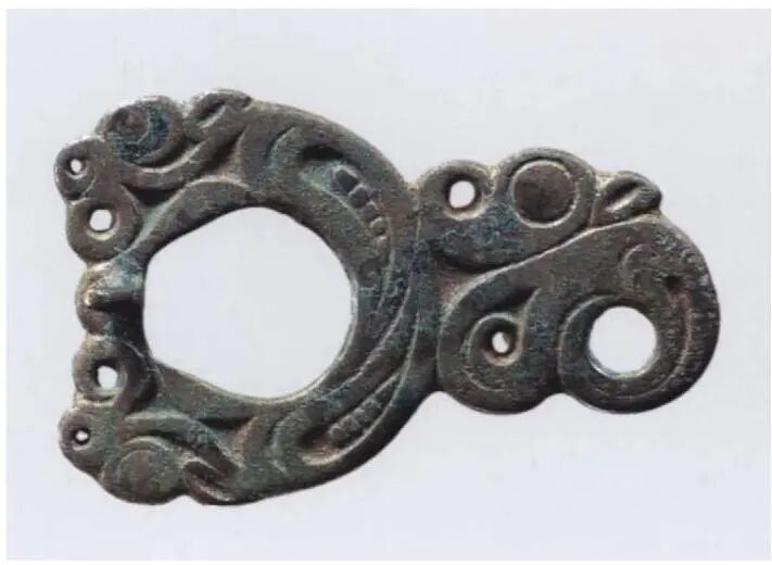 Compared to the Ordos region, the artifacts of nomadic peoples in southern Ningxia and southeastern Gansu exhibit highly complex cultural hybridity. Burial goods include harness ornaments, horse tack fittings, and large, exquisitely crafted belt buckles featuring diverse styles, casting techniques, and animal motifs. Animal-shaped yoke ornaments are common in burials. Typologically, a minor distinction exists between those from southern Ningxia and southeastern Gansu and those from the Ordos region: the cast animal mouths on the former are open.