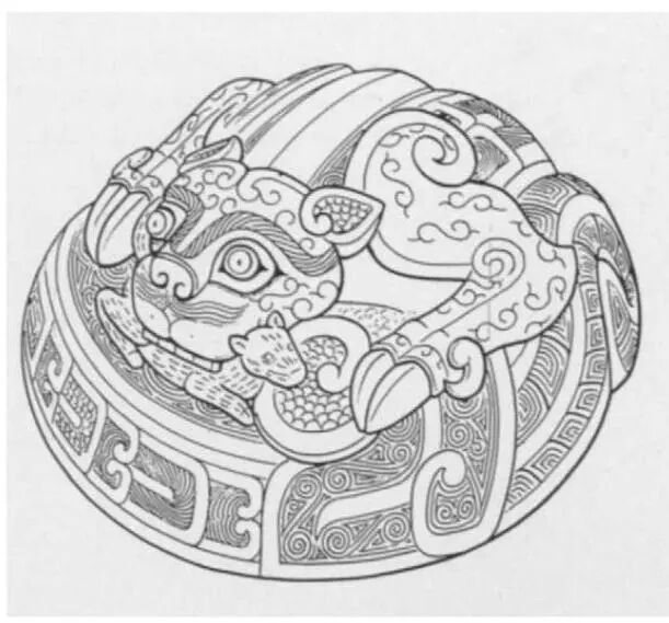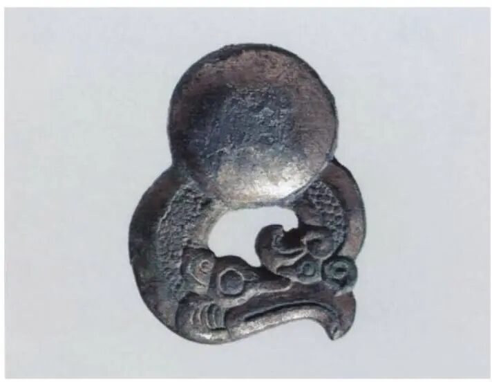 Large belt buckles depict a standing carnivore tearing into an injured herbivore. These buckles were cast in mirrored pairs and often tin-plated to achieve a bright silver surface. Such belt buckles first appeared in the Tagar culture of Minusinsk, Siberia, and were also found among nomadic groups in the Altai Mountains. This indicates long-distance trade links between Minusinsk, the Altai Mountains, and Guyuan-Qingyang, while similar buckles did not appear near Ordos during the same period.
