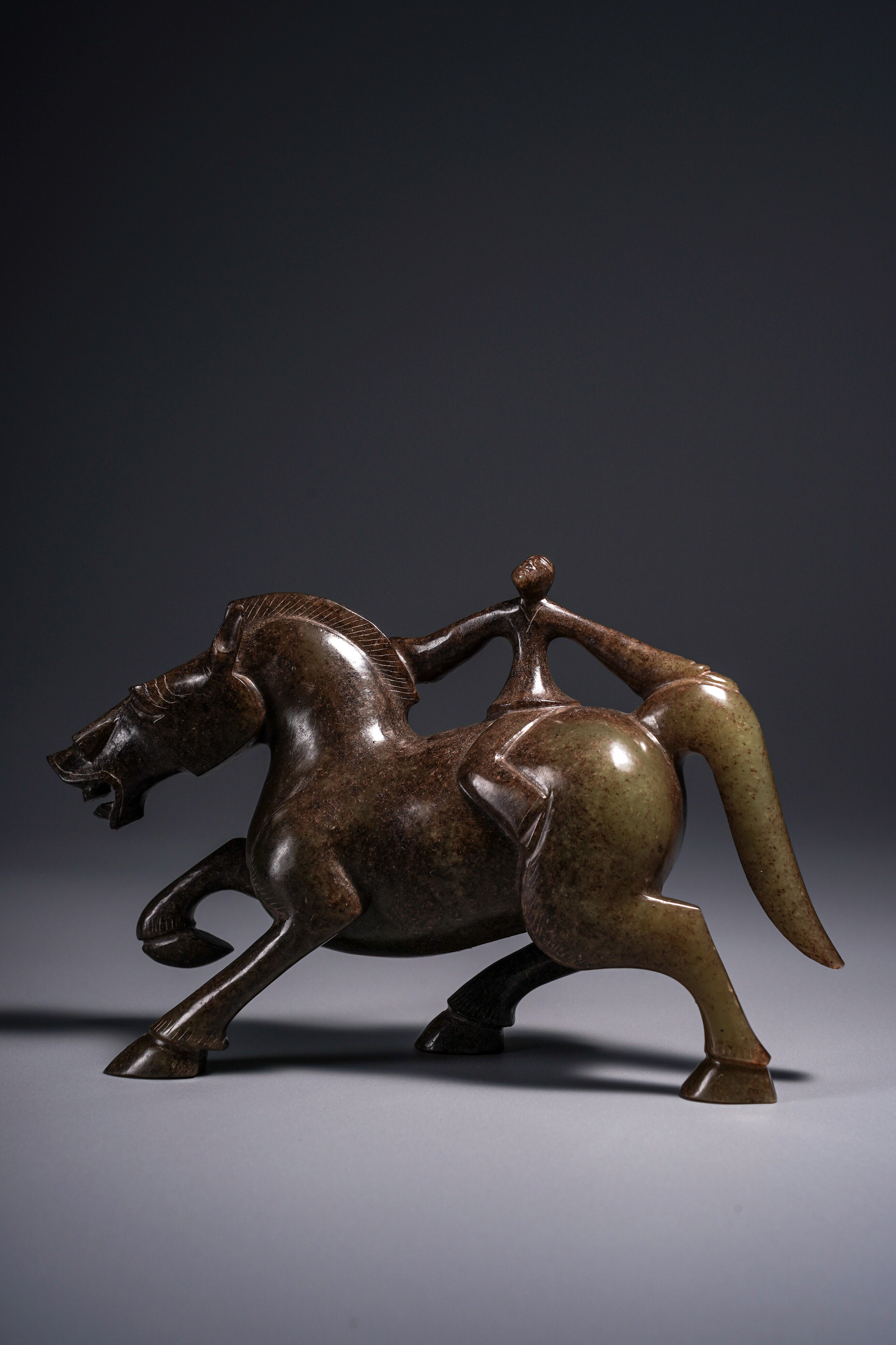 Han dynasty jade animal carving technique is unique, such as jade pig, jade sheep, etc., using the "Han eight knife" technique, harsh lines, vivid form. Animal jade carvings of the Han Dynasty focused on realism, reflecting the influence of sculpture at that time. Jade carvings focusing on subjects such as immortals riding horses, such as the Jade Immortal Running Horses, have reached a mature level of conception and carving.