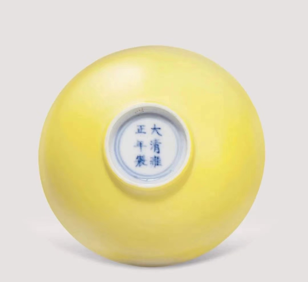 清雍正 柠檬黄釉茶圆一对(201.6万)