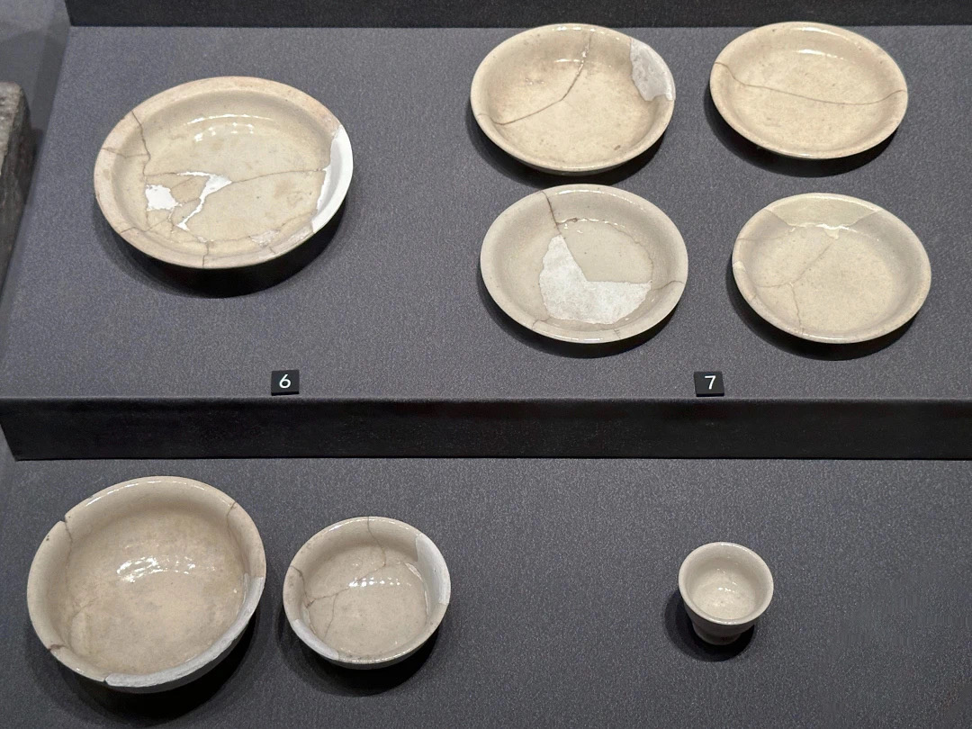 出土白瓷:巩义窑塔式罐3、巩义窑穿带壶1,巩义窑碗7