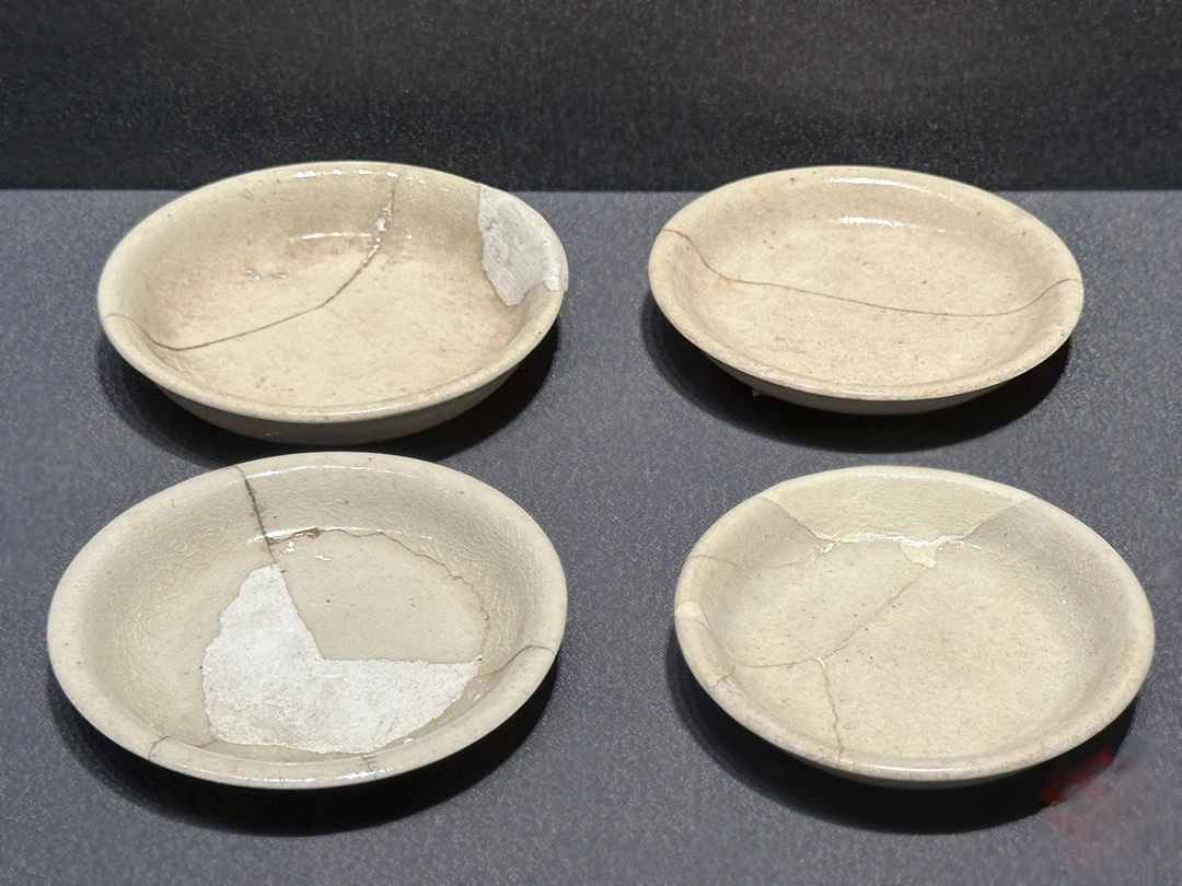 出土白瓷:巩义窑白釉辟雍砚1、三足盆 1