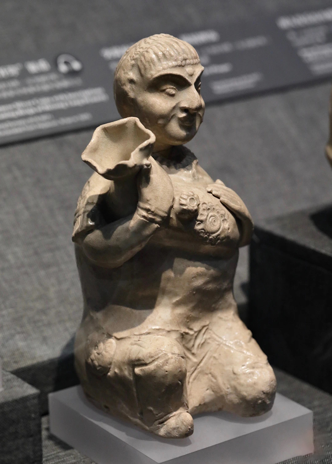 出土白瓷:巩义窑白瓷细颈瓶1、巩义窑白瓷四系罐2、巩义窑白瓷贴花高足钵1、巩义窑白瓷罐1、巩义窑白瓷器盖1、巩义窑白瓷进献贡酒抱皮囊俑1、巩义窑白瓷胡人头1