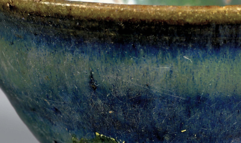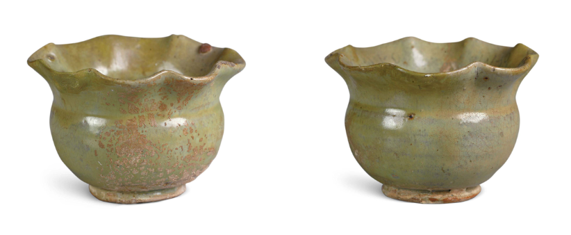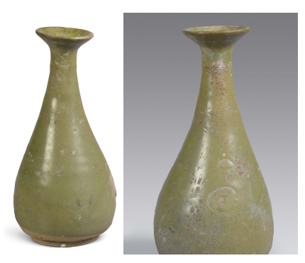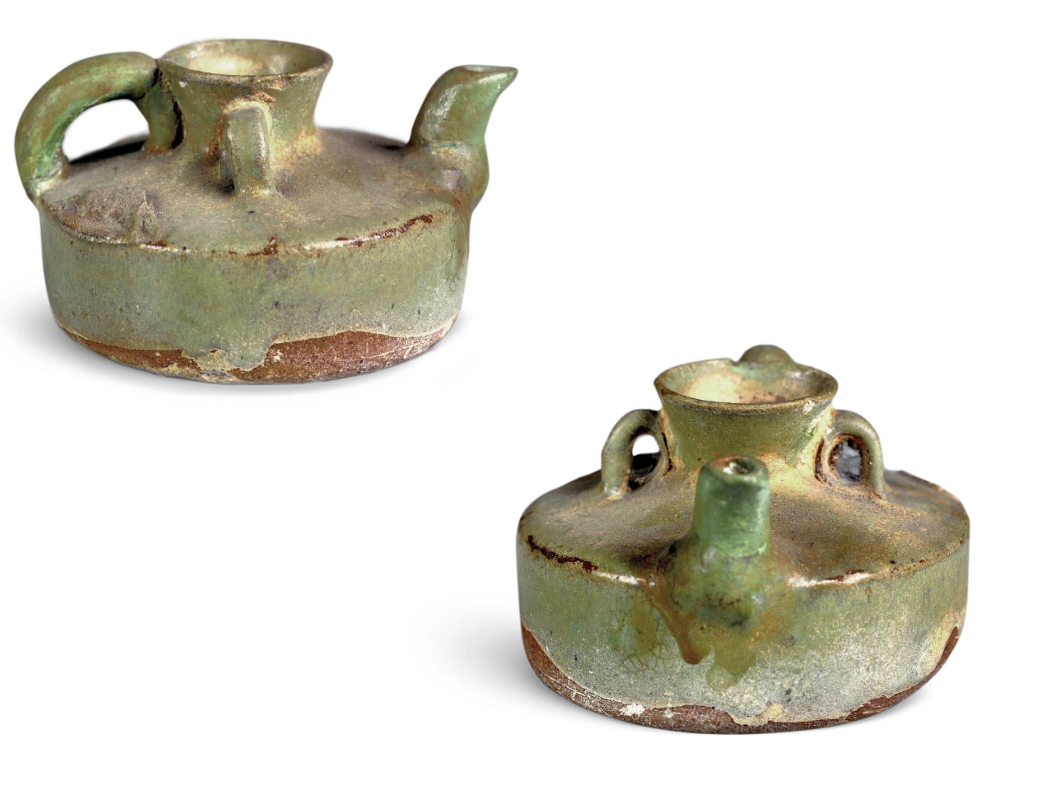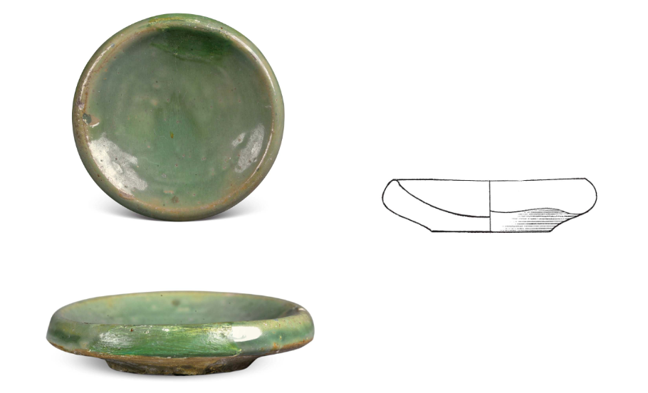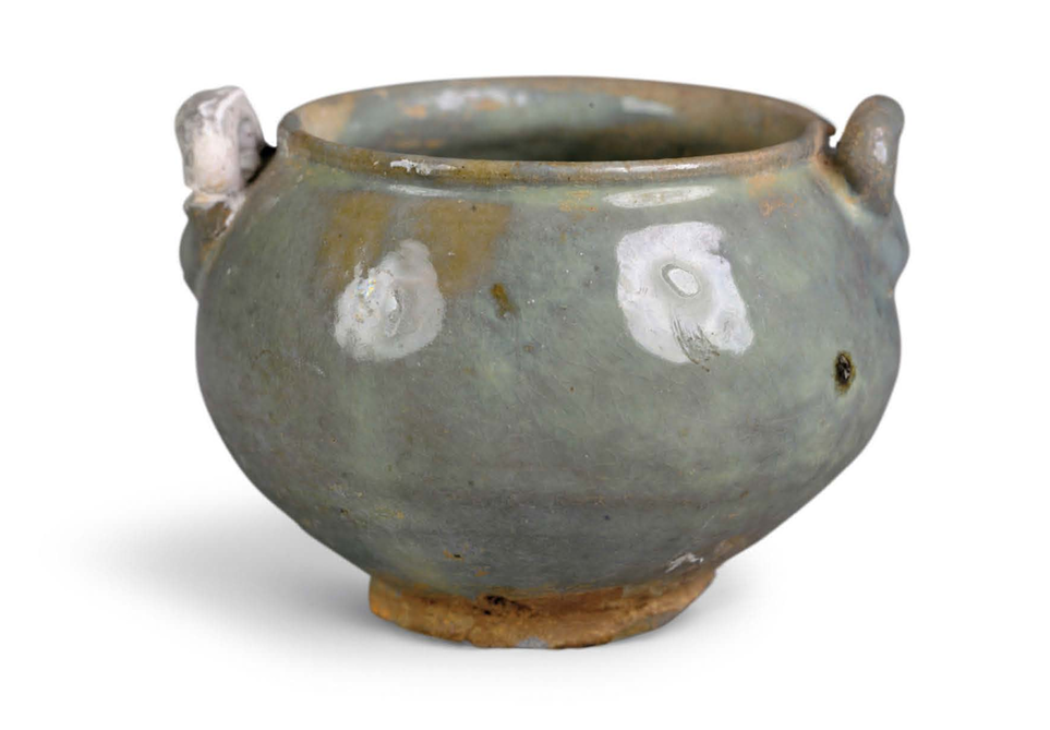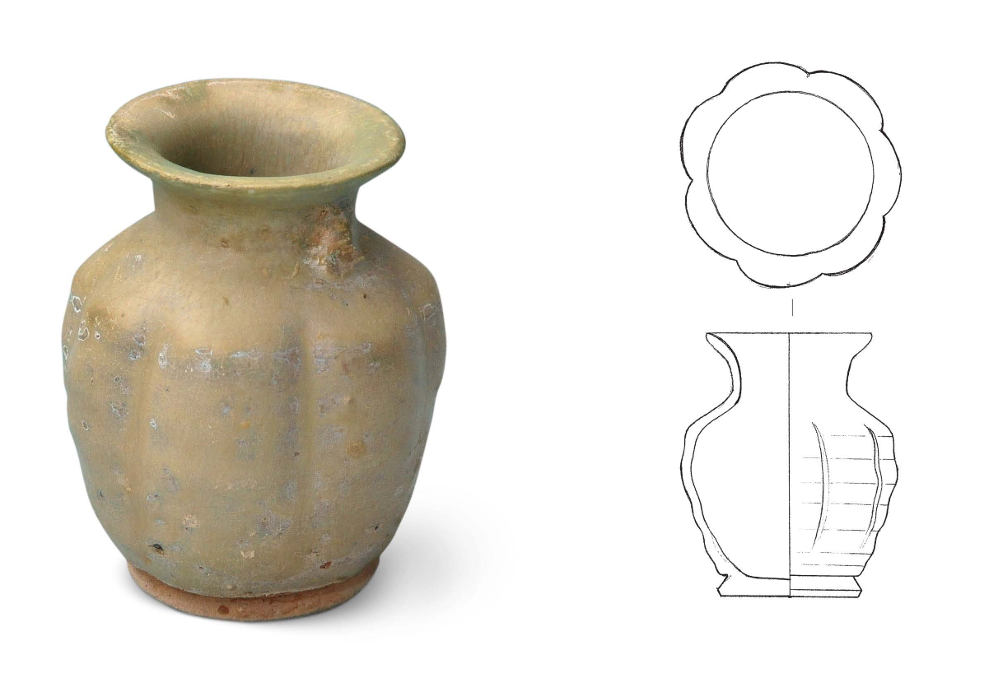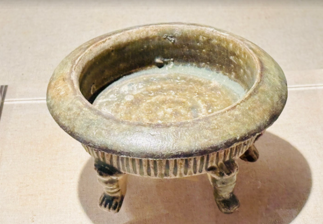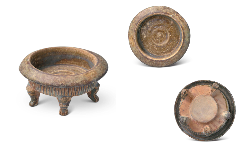 Decoration was minimalist, with milky glazed vessels mostly plain. Only multi-legged braziers featured mold-impressed animal masks on their outer sides, while vase-shaped vessels occasionally bore sawtooth or inverted triangular incisions. Green glazed bowls retained traces of green-painted grass leaves.