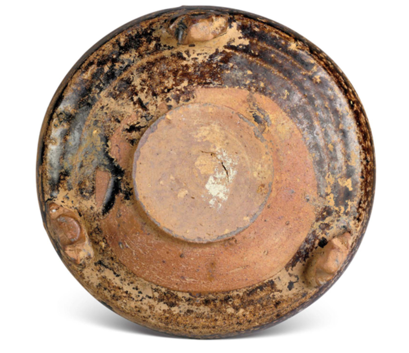 Firing techniques revert to primitive methods, with open-flame stack firing becoming the absolute norm. Kiln shelves are largely abandoned, while small, flat kiln-saggar marks remain on the inner bases of bowls, plates, cups, and braziers—an ancient practice unchanged for millennia.
