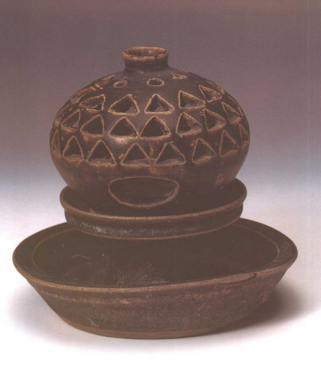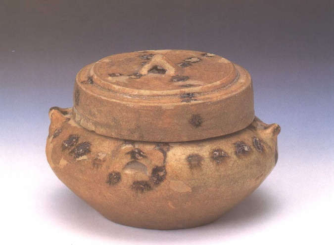 Meanwhile, the funerary objects common in the Western Jin period—such as molded clay vessels, mortars, sieves, wells, and pigsties—virtually disappeared by the Eastern Jin period, appearing only sporadically in a handful of tombs. This reflects a trend toward simpler burial customs. Among typical artifacts, bowls in the late Eastern Jin period predominantly featured plain surfaces with string-impressed patterns, along with faux ring bases and stacked firing marks. Eared cups were often unearthed paired with plates, serving as precursors to lamp stands. Later bowls commonly displayed dotted decoration around the rim, which gradually gave way to plain surfaces. Among jars, the chicken-head spouted jar and the flat-rimmed jar maintained their forms for extended periods with minimal variation, though late examples featured bridge-shaped handles and dotted decoration.
