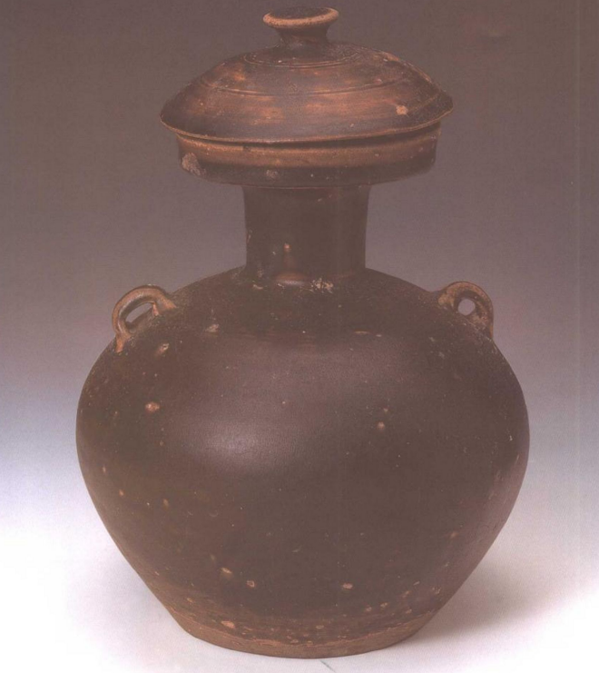 Deqing Kiln Black-Glazed Double-Handled Covered Pot