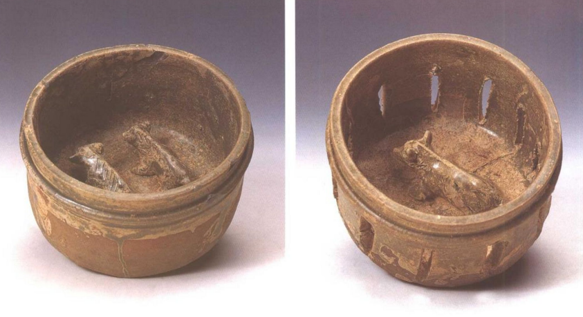 During the Eastern Jin Dynasty, although the number of dated tombs increased compared to the Western Jin period, both the variety and quantity of burial objects decreased significantly. Archaeological evidence indicates that burial goods were primarily utilitarian items, mainly comprising seven categories of food and drink containers such as bowls, cups, saucers, eared cups, plates, jars, and pickle jars. Daily necessities included spittoons, tiger-shaped urinals, incense burners, washbasins, bowls, flat-rimmed pots, chicken-head jars, fruit boxes, wine vessels, and lamps, totaling about ten types. Stationery items were limited to just two types: water pots and inkstones. Most tombs yielded relatively few artifacts, with a rather limited variety. For instance, the tomb from the first year of the Xianhe era (326 CE) yielded 53 artifacts, including 31 jars and 14 bowls; the tomb from the seventh year of the Yonghe era (351 CE) yielded 36 artifacts, including 13 plates; and the tomb from the third year of the Yixi era (407 CE) yielded 24 artifacts, including 11 plates. Even in tombs with slightly larger numbers of burial objects, the composition of artifact types remained notably monotonous.