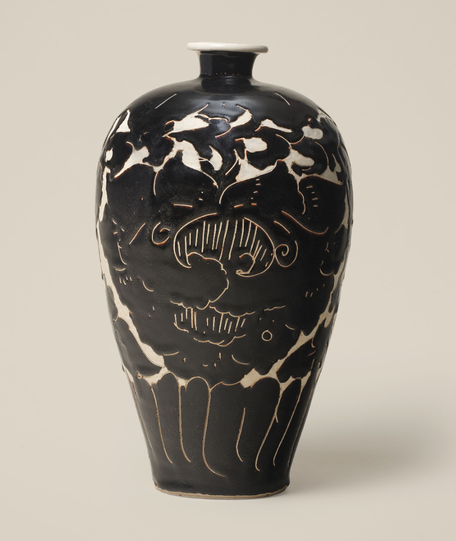 北宋 磁州窰白地剔黑彩牡丹紋梅瓶