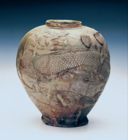 图12钱元瓘墓出土秘色瓷龙纹盘口壶
