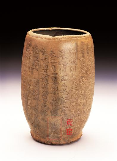 To this end, the Wu Yue Kingdom established the “Ceramic Kiln Administration Office” at Shanglin Lake, the core production area of Yue Kiln, to directly oversee kiln operations, pioneering an early “imperial kiln” system. The discovery of a box-shaped pottery container bearing the official mark “官” (guān) at the Hou Si'ao kiln site (Fig. 41), along with inscriptions on a tomb jar from the third year of the Guanghua era near the kiln site referring to the “Gong Kiln” (Fig. 42), both confirm its status as an official production facility. It was precisely this monopolistic resource allocation and institutionalized production that laid the organizational foundation for the ultimate craftsmanship of secret-color porcelain.