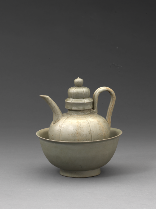 Secret-color celadon, representing the pinnacle of Yue kiln artistry, embodies the perfect fusion of craftsmanship and aesthetic sensibility of its era. With its jade-like lustrous glaze, pure and delicate body, and elegant, balanced forms, it achieves a pure beauty that transcends mere decoration. The aesthetic core of secret-color porcelain lies in its rejection of elaborate patterns, relying instead on the dignified presence of its forms and the warm, restrained elegance of its glaze. Its forms are richly diverse, primarily including bowls, plates, bowls, cups, boxes, and other vessels. It also encompasses ewers, vases, jars, saucers, incense burners, basins, pillows, belt-ring ewers, octagonal purifying vases, round-bellied purifying vases, cup stands, and more. Each type of vessel features multiple distinct shapes, all embodying ingenuity within simple lines. Its glaze is crystalline and pure, with a soft luster. To the eye, it resembles distant mountains veiled in mist; to the touch, it feels like the gentle ripples of spring water. This fully embodies the refined, restrained, and scholarly aesthetic cherished in Jiangnan culture since the Tang Dynasty. To achieve the artistic effect of “like ice, like jade; without water, yet like water,” they pioneered the ultimate technique of individually sealing each piece in a porcelain saggar with glaze before firing. This ensured the purity and perfection of the glaze color. Every vessel, from the initial shaping to the full glaze firing, was crafted with meticulous attention to detail and without regard for cost, reflecting its status as exclusive porcelain for the imperial courts of the late Tang and Five Dynasties periods.