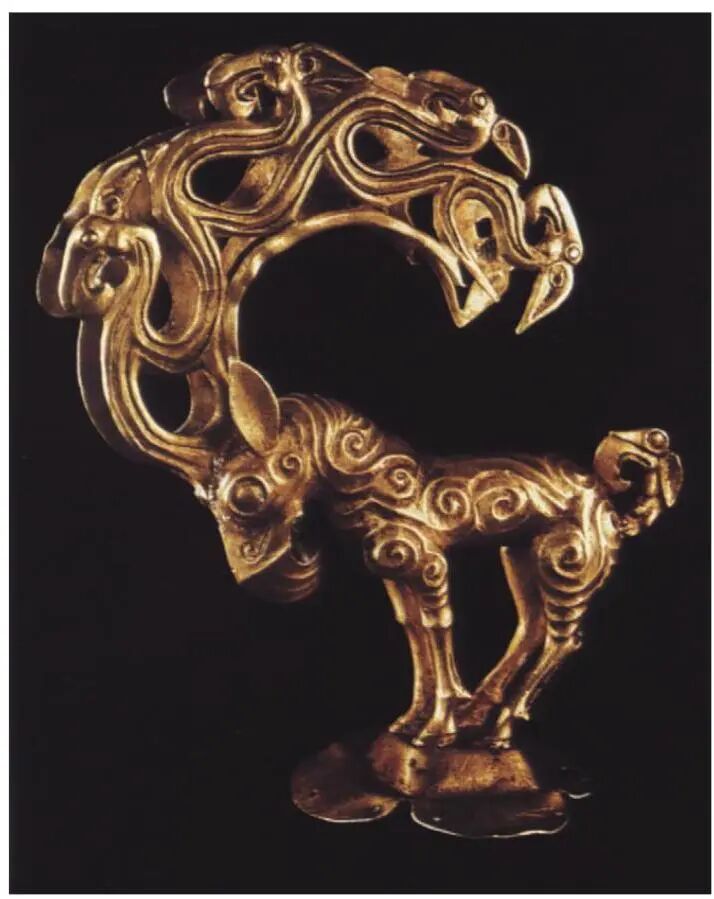 Though nomadic peoples left no written records, the metal artifacts, pottery, and horse tack they produced became key to deciphering their culture and beliefs. Moreover, lacking natural boundaries, the artifacts of these horse-riding nomads exhibited remarkable homogeneity across the Eurasian steppes, reflecting their similar lifestyles and natural environments. As quintessential equestrian peoples, these groups produced vast quantities of horse- and riding-related artifacts, often adorned with animal motifs such as wild goats, hedgehogs, deer, camels, griffins, and dragons. These motifs radiate both a fierce, aggressive energy and an alluring charm, perpetually brimming with vitality and life. This “animal style” became a major source of inspiration for decorative arts across Eurasia for centuries to come.