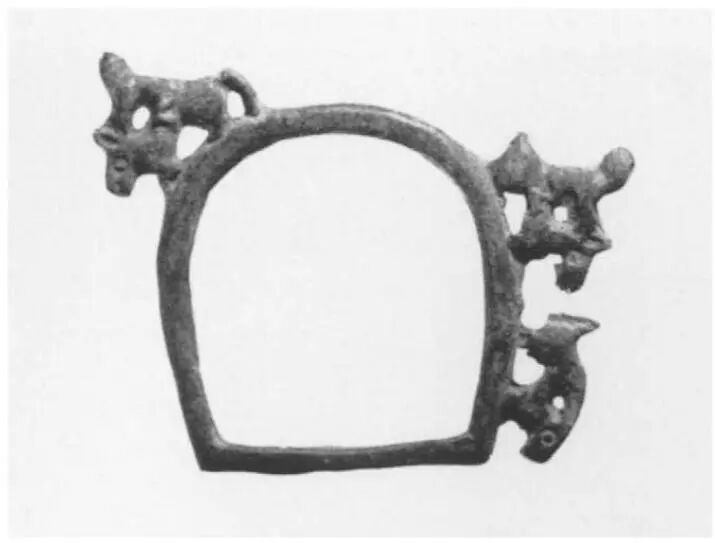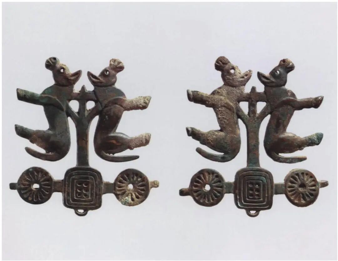 Compared to the Ordos region, the artifacts of nomadic peoples in southern Ningxia and southeastern Gansu exhibit highly complex cultural hybridity. Burial goods include harness ornaments, horse tack fittings, and large, exquisitely crafted belt buckles featuring diverse styles, casting techniques, and animal motifs. Animal-shaped yoke ornaments are common in burials. Typologically, a minor distinction exists between those from southern Ningxia and southeastern Gansu and those from the Ordos region: the cast animal mouths on the former are open.