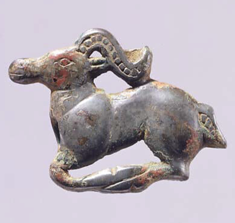 Two yoke ornaments shaped like recumbent rams