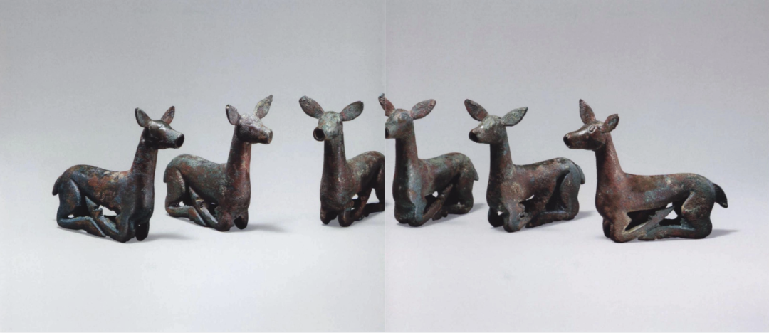 Some animals depicted on the yoke ornament are in a reclining posture, which differs significantly from the depictions of hoofed animals on artifacts from the Northeast region, where the latter appear to be running. In the Ordos region, the reclining animal is a red deer. Its legs are crossed, with the soles of the front hooves facing upward and those of the hind hooves downward. This posture originates from the artistic traditions of the Qin state and can be traced back to the Shang dynasty. Furthermore, this distinctive depiction of hooves also appears in contexts from the Black Sea region during the 5th century BCE.