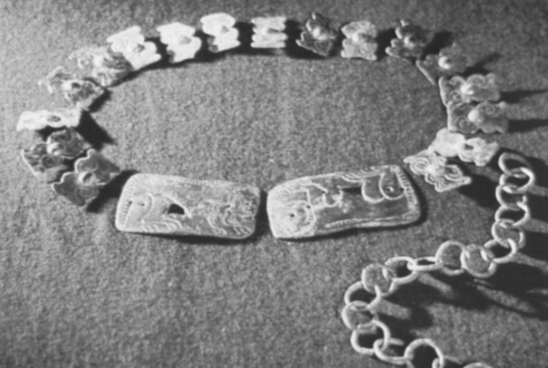 In northern Hebei, the most distinctive handmade artifacts of these ethnic groups are breastplates. These breastplates often carried class distinctions, with higher-ranking individuals wearing gold breastplates, some of which were inlaid with turquoise (mostly lost today). The designs of the breastplates also appear to reflect gender differences: men predominantly wore breastplates featuring leopard motifs, while women preferred designs depicting frogs encircled by snakes, possibly symbolizing fertility.